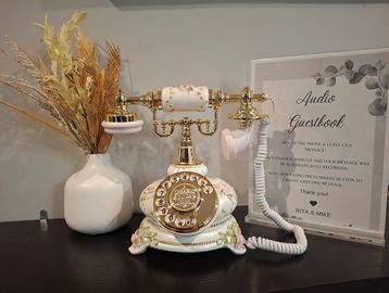 Capture memories in style with our Vintage Audio Guestbook (Vintage Phone, Vintage typewriter & Vintage Vinyl Player). This unique products allows guests to leave heartfelt messages and well-wishes at your event. Perfect for weddings and special occasions.